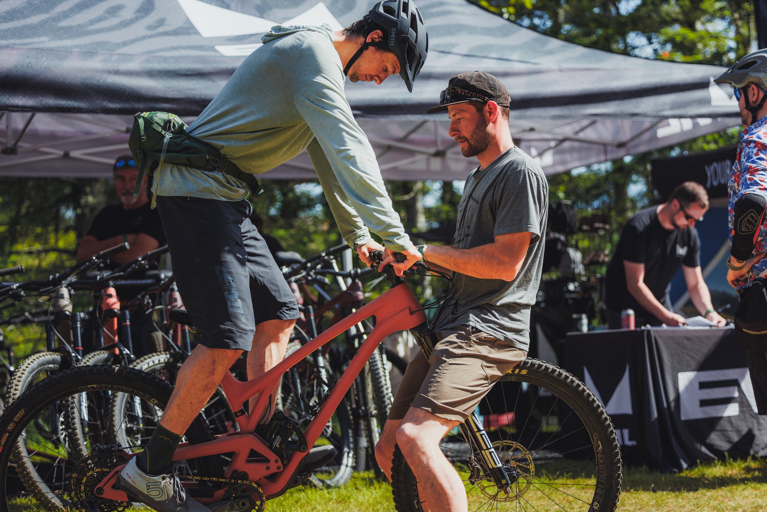 Head to the Specialized, Pivot, or Evil tents in the Top Gun Zone to check in.