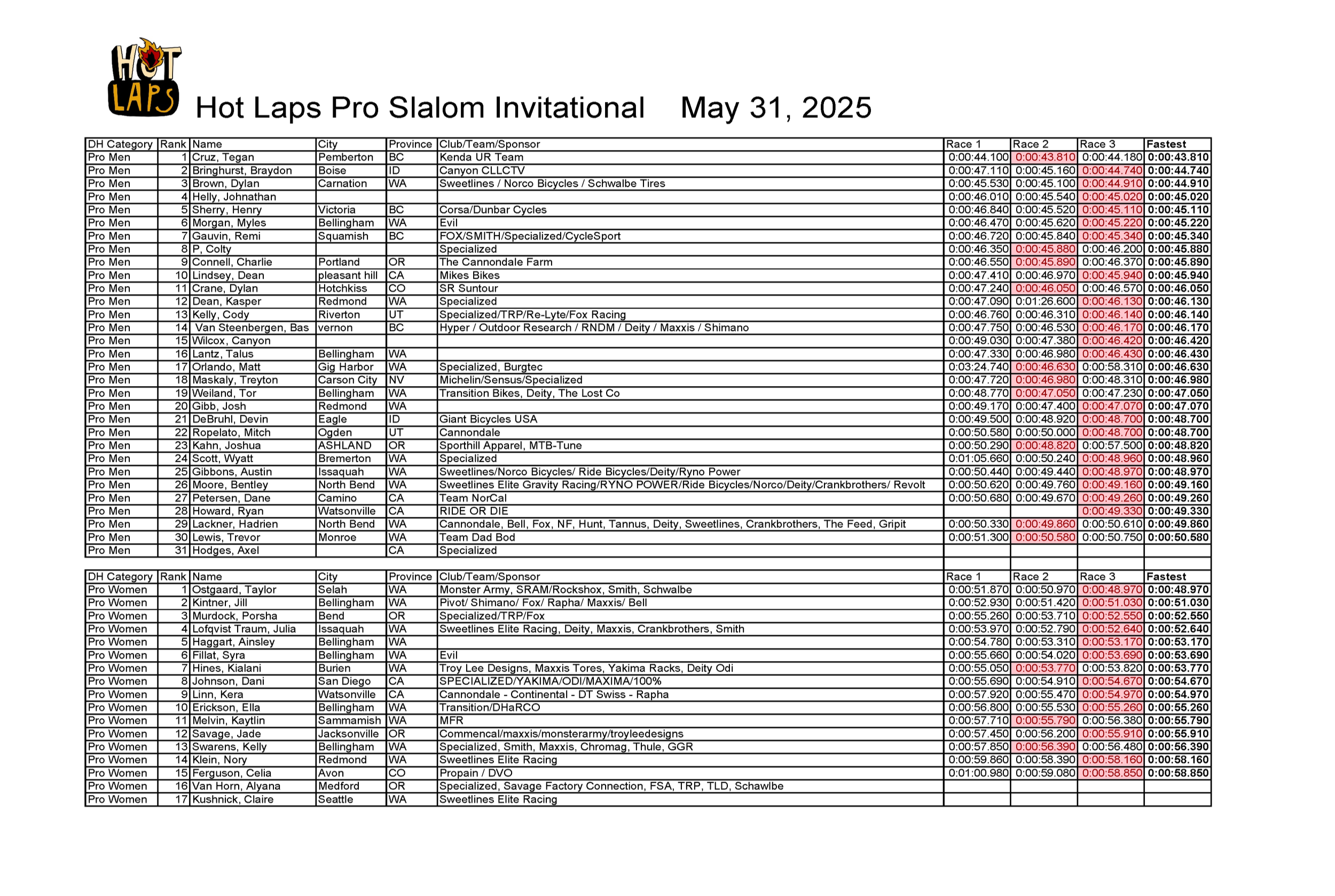 2025 PRO SLALOM RESULTS